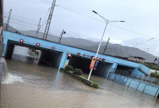 經(jīng)過(guò)現(xiàn)場(chǎng)察看,由于短時(shí)間降雨量太大,龍津河水位暴漲高于通道出口頂標(biāo)高,河水倒灌至下穿通道導(dǎo)致交通中斷下穿通道水泵房三臺(tái)水泵全部啟動(dòng)抽水也無(wú)法滿足排水要求。公司防汛小組到達(dá)現(xiàn)場(chǎng)后,連夜組織人員拉好警戒線,設(shè)置警示標(biāo)志,防止車輛進(jìn)入下穿通道,并調(diào)度4輛應(yīng)急車輛及時(shí)排水并清洗路面;同時(shí),提前與鐵路部門(mén)、交警部門(mén)聯(lián)系,暫時(shí)封閉該段線路。經(jīng)過(guò)6小時(shí)的不斷抽水,路面已基本暢通,搶險(xiǎn)過(guò)程未發(fā)生任何險(xiǎn)情和人員傷亡。
