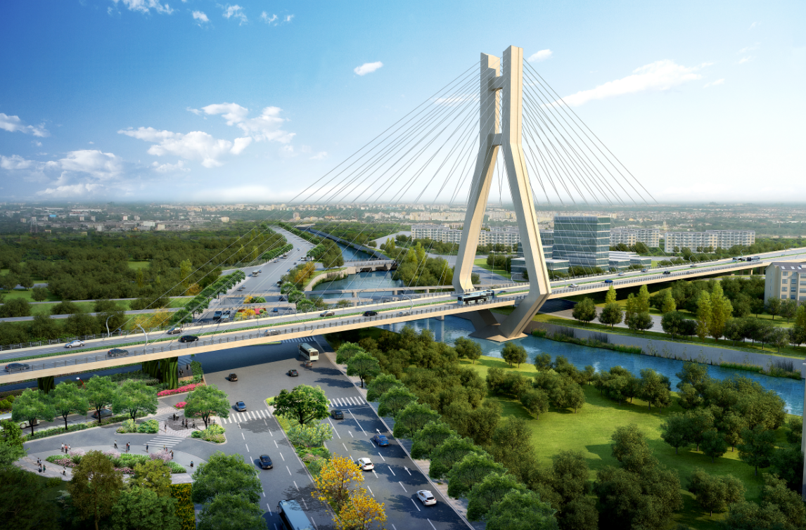 龍巖大道高架橋項目為省、市重點建設項目,是龍巖中心城市連接南北、溝通新老城區(qū)的重要樞紐,項目位于龍巖市南北交通中心軸和景觀軸線龍巖大道上,全長3395m,包含橋梁和地面道路兩大部分,其中橋梁工程總長2329m,橋?qū)?6m,包含一座190+150m獨塔斜拉索鋼箱梁主橋(主橋?qū)?6.3m),全線設計為雙向六車道,設計車速60km/h,在西陂路及人民路處各設置上下匝道,跨越雙洋路、羅龍東路、人民路、登高西路、西陂路城市主干道,項目總投資約24億元。