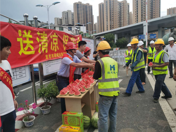 “弟兄們,來(lái)吃西瓜、喝涼茶”7月3日大中午,龍巖市政集團(tuán)組織的黨員、志愿者們?yōu)槲玳g在項(xiàng)目現(xiàn)場(chǎng)暫時(shí)休息的一線工人們獻(xiàn)上一塊塊甘甜可口西瓜。這是該公司針對(duì)近來(lái)天氣悶熱特意為一線職工開(kāi)展的“走項(xiàng)目、送清涼、保安全”活動(dòng)。班子成員兵分幾路分別帶隊(duì)前往龍巖大橋、浮東路、羅橋節(jié)點(diǎn)和龍巖大道二期等重點(diǎn)項(xiàng)目,為現(xiàn)場(chǎng)一線的工人們發(fā)放了西瓜、王老吉和菊花茶等防暑降溫食品,對(duì)廣大在一線的員工克服天氣影響,堅(jiān)守崗位認(rèn)真工作表示感謝!