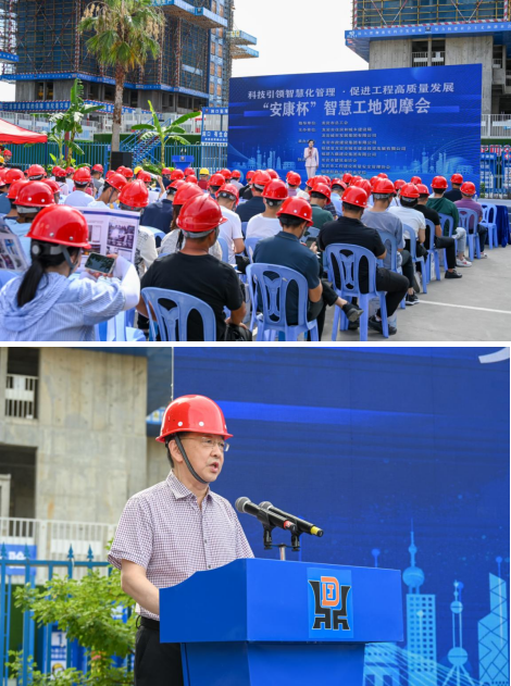 為推動(dòng)我市房屋市政工程智慧工地建設(shè),促進(jìn)建筑施工企業(yè)質(zhì)量安全管理標(biāo)準(zhǔn)化、信息化、智能化發(fā)展,7月20號(hào)上午,由市住建局和城發(fā)集團(tuán)主辦,市政集團(tuán)及福建九鼎集團(tuán)共同承辦的全市智慧工地觀摩會(huì)在龍欣小區(qū)安置房二期Ⅱ標(biāo)段項(xiàng)目舉辦,市住建局二級(jí)調(diào)研員王健蒞臨觀摩會(huì)致辭,市住建局、城發(fā)集團(tuán)及所屬企業(yè)相關(guān)工程技術(shù)人員約100人參加。觀摩會(huì)還吸引了來自龍巖市建筑業(yè)協(xié)會(huì)、龍巖市工程建設(shè)質(zhì)量安全管理協(xié)會(huì)、福建船政交通職業(yè)學(xué)院等有關(guān)專家到場(chǎng)指導(dǎo)。